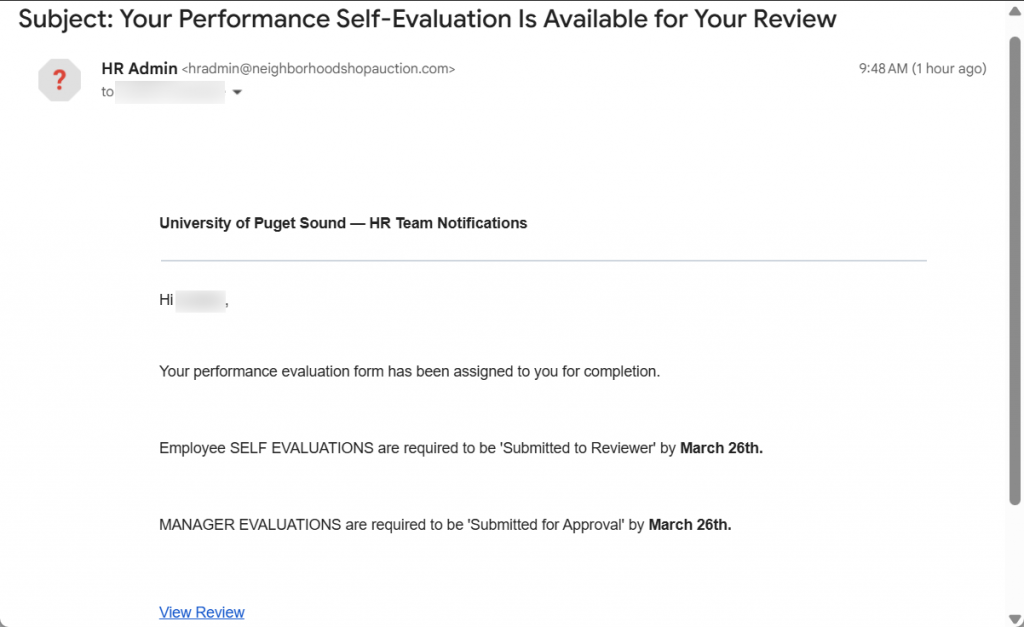 Subject: Your Performance Self-Evaluation Is Available for Your Review